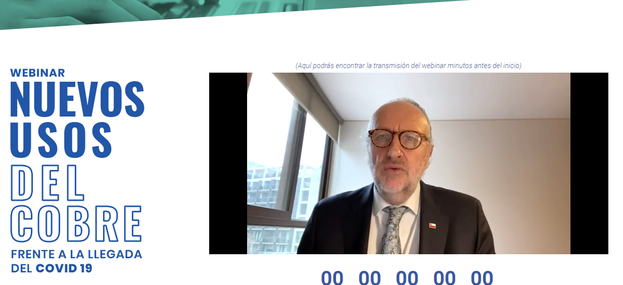 Al inaugurar el evento, el ministro de Minería, Baldo Prokurica, destacó los emprendimientos chilenos que están empleando el cobre para prevenir el contagio, como la fabricación de mascarillas y guantes, y reiteró su propuesta para que se incorporen nanopartículas de cobre en billetes y tarjetas bancarias, con el objetivo de evitar que estos instrumentos de pago sean vehículo de transmisión de virus, bacterias y gérmenes.