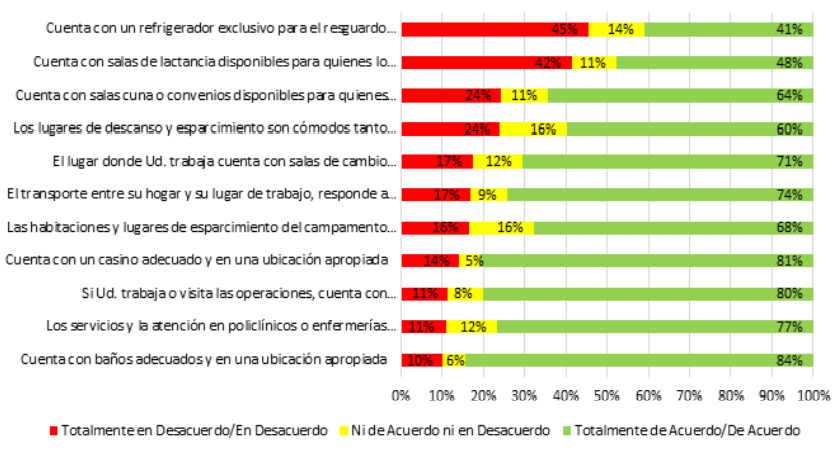 Respecto de la existencia de salas de lactancia, las trabajadoras de empresas de la gran minería valoran la habilitación de este espacio, sin embargo, se comenta que aún no está disponible en las instalaciones de empresas de pequeña y mediana minería.